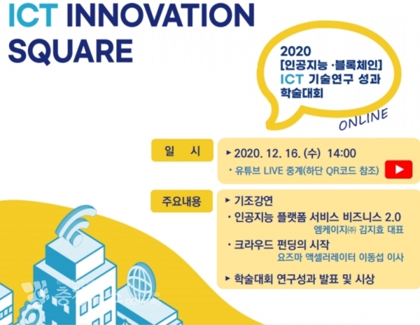 이번 온라인 학술대회는 16일 14:00부터 ▲유튜브 사이트(https://han.gl/ICT기술연구성과학술대회)를 통해 실시간 중계되며, 누구나 참여 가능하고, 이벤트 역시 14:00부터 18:00까지 ▲참가 페이지(https://han.gl/이벤트참여)에서 참여가 가능하다.