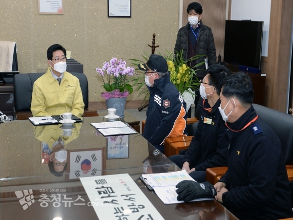 양승조 충남도지사는 2일 새해 첫 일정으로 예산소방서를 찾아 소방대원들의 노고에 감사를 전하고, 근무자들을 격려했다. 저작권자 © 충청뉴스 무단전재 및 재배포 금지 김윤아 기자 다른기사 보기 기사가 마음에 드셨나요? 충청뉴스 좋은 기사 후원하기 1,000원 3,000원 5,000원 10,000원 30,000원 50,000원 직접입력 비회원 약관동의하기 ※ 소중한 후원금은 더 좋은 기사를 만드는데 쓰겠습니다.