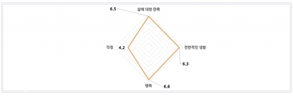 ‘행복경험’ 정도를 10점 만점에 6.6점, ‘삶에 대한 만족’ 정도 6.5점