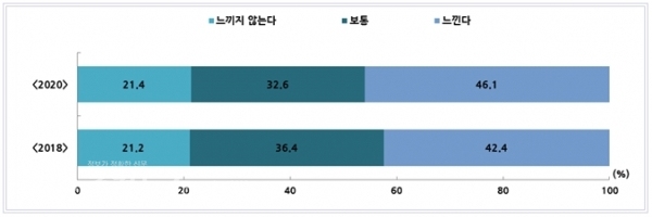 ‘삶에 대한 만족감과 정서 경험’ 부문에서는 행복경험을 6.6점, 삶에 대한 만족정도를 6.5점으로 답했으며, 이 또한 2018년 조사 결과인 6.3점, 6.2점에서 각각 0.3점씩 상승했다.