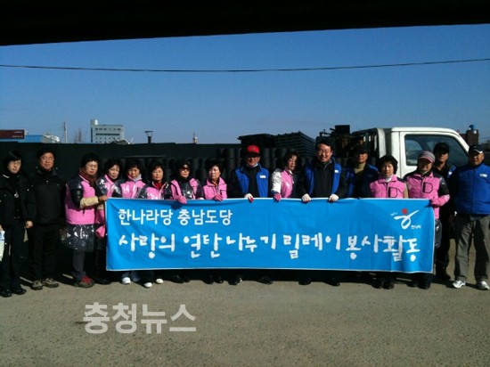 한나라당 충남도당(위원장 김호연)은 16일 충남 논산시에서 ‘나누는 사랑, 커지는 기쁨’이란 슬로건으로 사랑에 연탄나누기 봉사활동을 갖고 이웃 사랑을 실천했다.