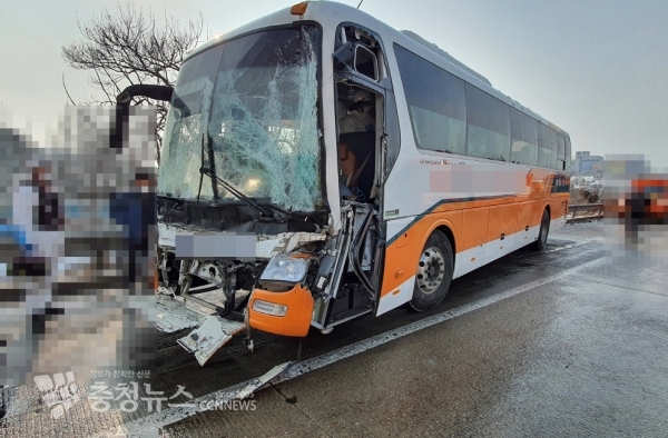 소방서관계자의 의하면 금일 발생한 교통사고는 8.5톤 컨테이너 트럭이 눈길에 서행중이던 25톤 트레일러를 피하기 위해 급정거하자, 후방에서 운행중이던 시외버스가 컨테이너 트럭 우측면을 추돌하면서 발생했으며 정확한 요인에 대해서는 조사중이라고 전했다.