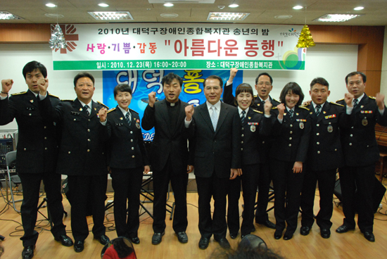 대덕경찰서 (서장 이자하)는 제복을 입고 한손에 각종 악기를 든 채 마음 좋은 옆집 아저씨처럼 시민들에게 다가서는 경찰, 대덕경찰서 경찰관 밴드 '대덕 폴 사운드'가 지난 23일 오후 4시에 대덕구 장애인 종합 사회복지관에서 연말연시 사랑 나눔 문화 확산을 위한 음악회를 펼쳐 화제를 낳고 있다.