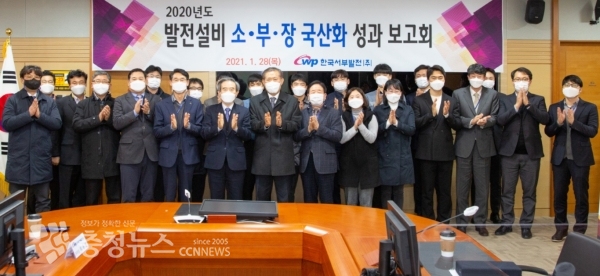 한국서부발전(사장 김병숙)은 28일 태안 본사에서 지난 한 해 동안 발전설비 소재·부품·장비의 국산화에 적극 참여해 뛰어난 성과를 창출한 직원들을 격려하고, 함께 노력한 중소기업에게 감사하기 위해 ‘2020년도 발전설비 소부장 국산화 성과보고회’를 열었다.