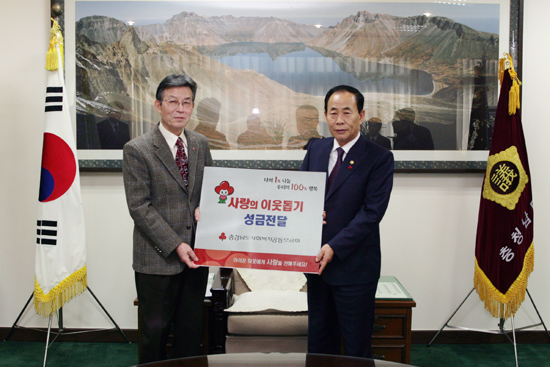 충청남도의회(의장 유병기)는 연말연시를 맞이해 28일 의장 접견실에서 사회복지공동모금회에 불우이웃돕기 성금을 기탁했다.