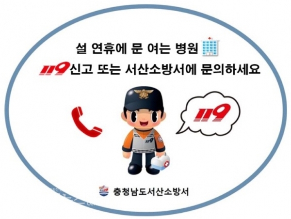 서산소방서(서장 강기원)는 설 연휴 기간 병원ㆍ약국 등 휴진으로 인한 불편함을 119신고를 통해 필요한 경우 쉽게 안내 받을 수 있다.
