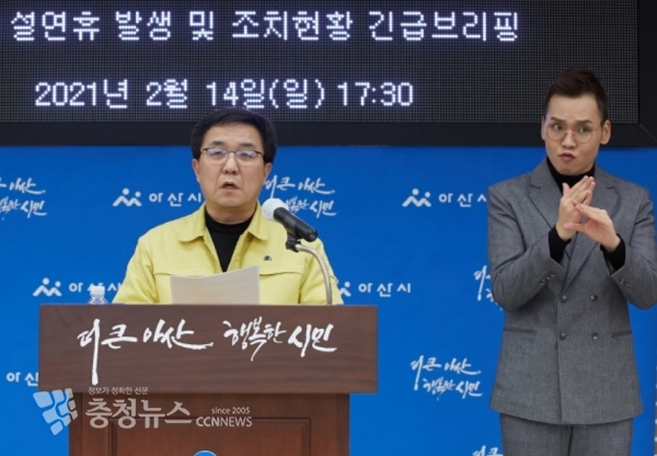 아산시(시장 오세현)구본조 보건소장은 14일 오후 5시 30분 중회의실에서 설 명절 기간 발생한 코로나19 확진자 현황 및 신속대응 긴급브리핑을 실시했다.