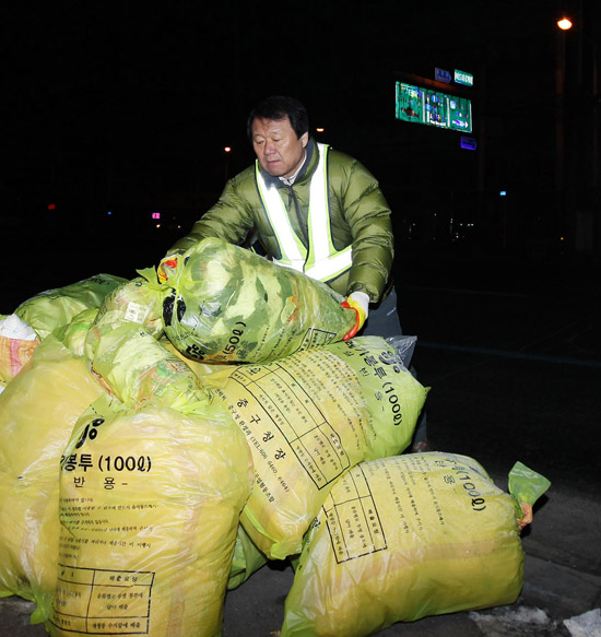 새해 첫날 시무식에 앞서 버드내 네거리(하이마트 유천점)를 출발해 문화로를 중심으로 문화초교 네거리까지 이지역 환경관리요원들과 함께 가정에서 배출한 생활쓰레기 종량봉투를 청소차에 직접 싫고 운반하는 현장작업을 체험실시 했다.
