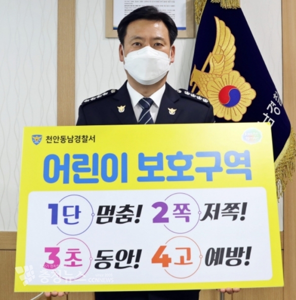 백남익 천안동남경찰서장이 박상돈 천안시장의 지목을 받아 17일 ‘어린이 교통안전 챌린지’에 동참했다고 밝혔다.
