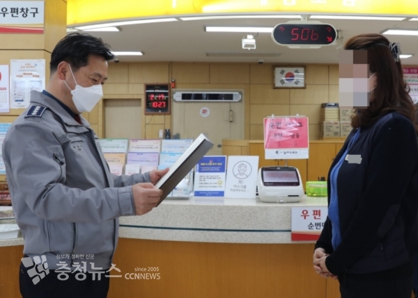 천안동남경찰서(서장 총경 백남익)는 17일 천안시 동남구 오룡우체국에서 신속한 신고를 통해 다액의 보이스피싱 피해를 예방한 오룡우체국 근무자에게 범죄 예방에 대한 감사장을 수여했다.