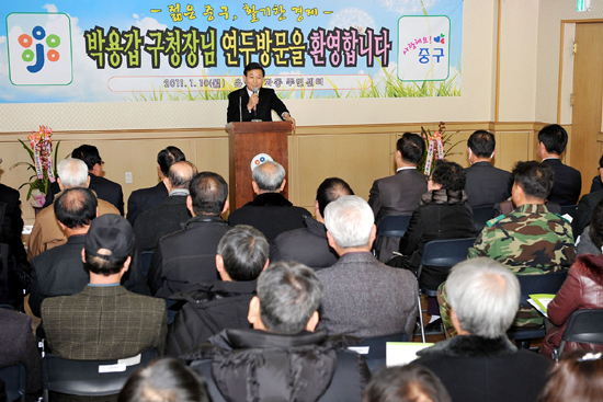 대전 중구(구청장 박용갑)는 즐풍목우(櫛風沐雨)의 현장행정을 통해 주민의 소리를 듣기위해 10일 은행선화동주민센터를 시작으로 오는 18일까지 17개동 연두방문을 실시한다고 밝혔다.