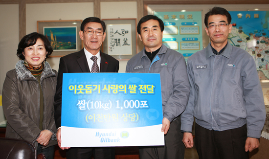 한편, 현대오일뱅크는 지난해 유류유출 사고로 인해 어려움을 겪었던 당진군과 태안군(각 1,000포씩), 공장이 위치한 서산시(3,000포)에 쌀을 기부했으며, 그 외 충남도 13개 시군에도 5,000여포의 쌀을 충남사회복지공동모금회를 통해 2003년부터 매년 기부하고 있는 것으로 알려져 지역과 기업의 상생 모델이 되고 있다.