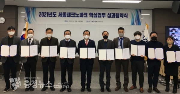 세종테크노파크(원장 김현태)는 2일 원장 및 관리자급 임직원(부서장, 팀장)이 참석한 가운데 책임경영 구현을 위한 2021년도 핵심업무 성과협약을 체결했다.