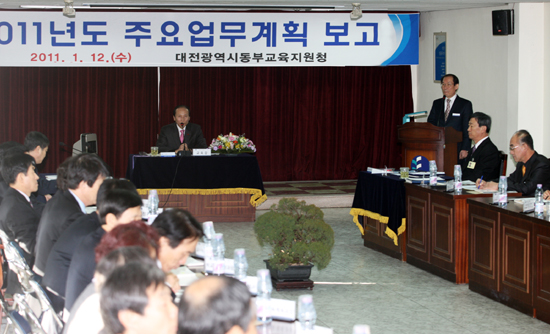 대전광역시동부교육지원청(교육장 김창수)은 12일 오전 대회의실에서 김신호 교육감 이하 공사립유치원원장 대표, 지역자율장학협의회 중심 초․중학교장, 지역협의체 학교운영위원회 대표, 동부교육지원청 직원 등 70여명이 참석한 가운데 2011년도 주요업무보고회를 개최했다.