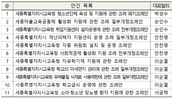 이어 “교육안전위원회 소관 의원발의 안건은 청소년단체 육성 및 지원에 관한 조례 폐지조례안 등 11건 등을 심의 의결 하겠다”고 설명했다.