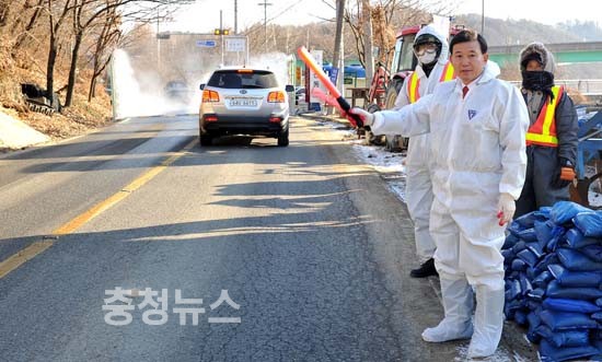 구는 지난 16일 소 605두에 대한 백신접종을 완료, 완벽한 방역을 위해 칼바람 속에서도 꿋꿋이 근무에 임하는 한편 지금까지 완벽 방역활동을 전개하고 있는 직원들과 군장병들을 격려하기 위해 지난 16일 박용갑 청장은 정생동 방역초소를 방문해 근무자들을 격려하고 함께 방역활동도 전개했다.