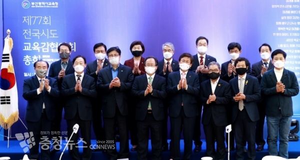 전국시도교육감협의회(회장 최교진, 이하 협의회)는 18일 부산 영도놀이마루에서 제77회 총회를 개최하여, 국민이 참여하는 상향식 교육과정 개정을 위한 ‘교육의제 토의’를 실시하고, ‘공무원 수당 등에 관한 규정’ 및 ‘지방공무원 수당 등에 관한 규정’ 등을 개정 요구하기로 심의ㆍ의결했다.