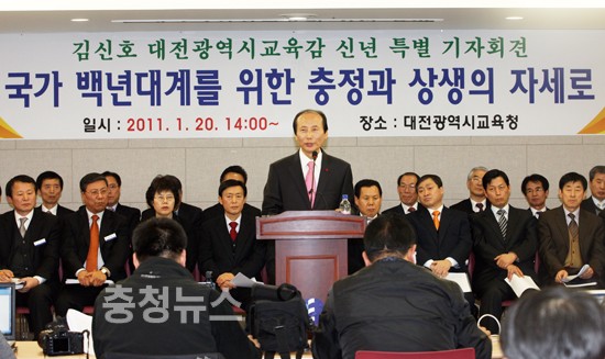 김신호 대전시교육감은 20일 전면무상급식문제와 관련한 대전시교육청의 입장과 교육감으로서의 소신을 밝혔다.