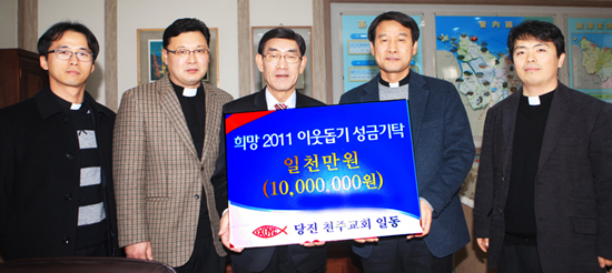 충청남도 당진군(군수 이철환) 천주교 당진지구 신부들이 이웃돕기 성금모금에 동참했다.