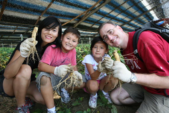 ▲ 인삼축제 인삼캐기 현장을 찾은 외국인 가족