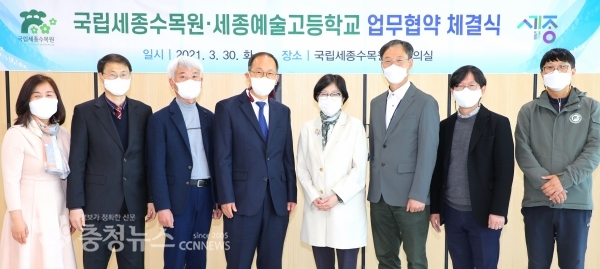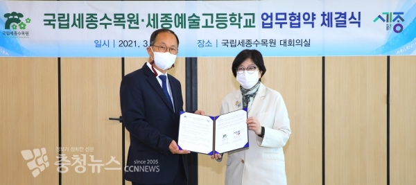 한국수목원관리원 국립세종수목원(원장 이유미)과 세종예술고등학교(교장 임진환)는 30일 ‘지역 문화예술 활성화를 위한 업무협약(MOU)’를 체결했다.