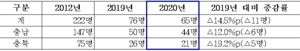 그 결과, 2020년 관내 국도에서 교통사고 사망자 수는 65명으로 2019년에 비하여 11명이나 감소(↓14.5%p)하는 성과를 거두었다.