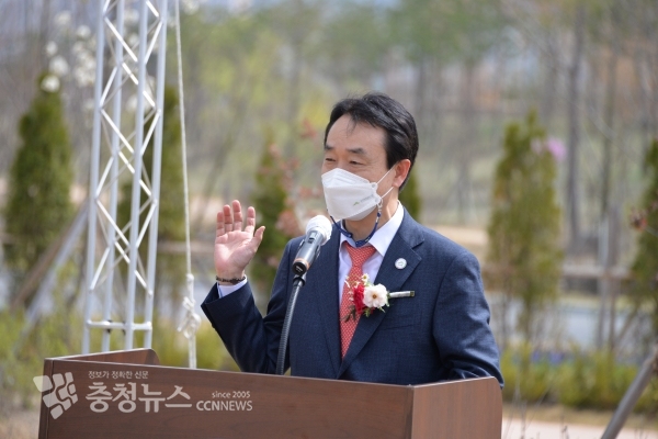이어 김용관 산림청 산림보호국장은 "지난 겨울에 한번 오고 또 이제 계절이 바뀌어서 세종수목원에 와 보니 가슴이 활짝 열리는것 같아 기분도 좋고 상쾌하다"며 "세종수목원을 위해 물심양면으로 도와주신 이춘희 시장님과 이태환 의장에게 감사를 드린다"고 말했다.