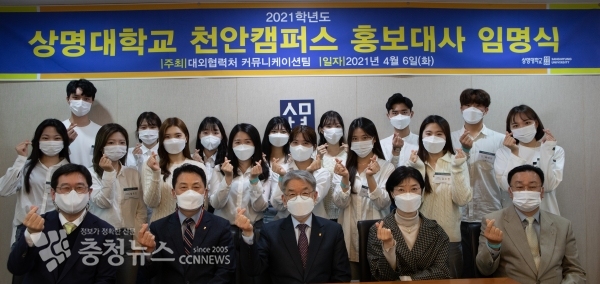 상명대학교(총장: 백웅기)는 6일 천안캠퍼스 본관 소회의실에서 2021학년도 상명대학교 천안캠퍼스 홍보대사 15명에 대한 임명식을 거행했다.