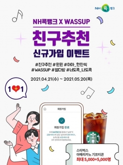 또한 NH콕뱅크는 4월 21부터 5월 20일까지 1개월 간 신규가입고객 및 신규가입 추천고객들을 대상으로 추첨해 최대 1만명의 고객에게 스타벅스 아메리카노 기프티콘을 경품으로 제공할 예정이다.