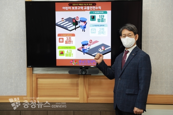 김용찬 충남도립대학교 총장은 23일 대학 총장실에서 ‘어린이 교통안전 릴레이 챌린지’ 켐페인에 동참했다.