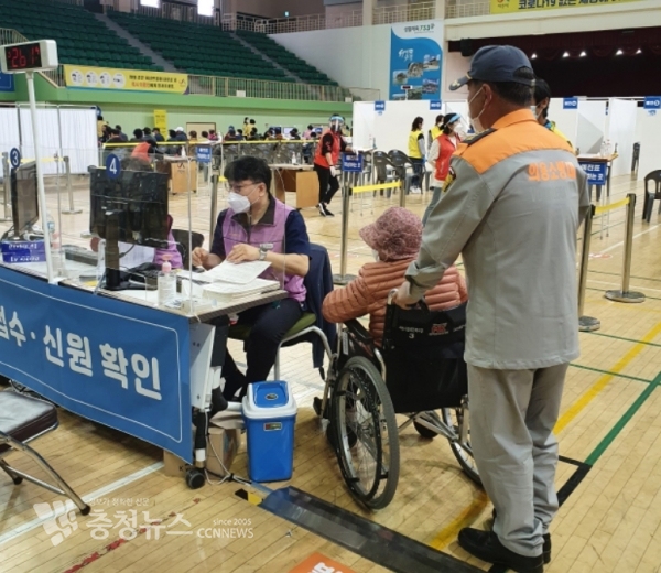 서산소방서 의용소방대가 어르신들의 원활한 백신 접종을 위해 자원봉사를 실시하고 있어 지역사회의 귀감이 되고 있다.
