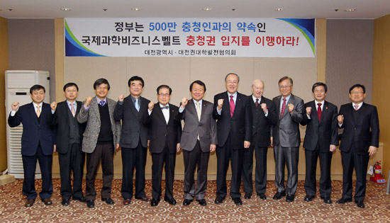 대통령의 과학벨트 충청권 조성 전면 백지화 발언 이후 대전권 대학발전협의회에서는 학계의 의견을 결집해 과학기술비즈니스벨트 입지는 충청권이 가장 적정지라는 것을 대내외에 천명하고 대통령과 정부의 조속한 이행을 촉구할 계획이다.