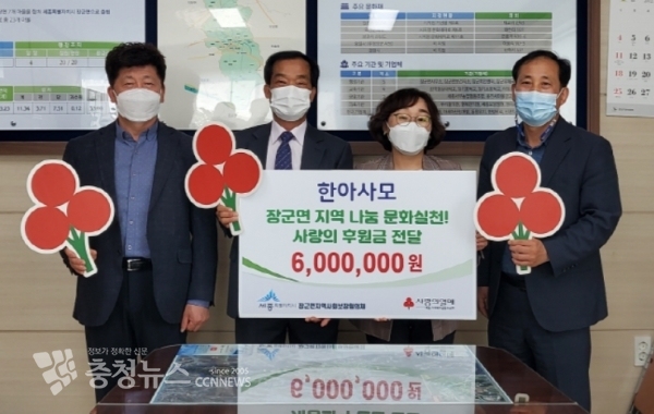 세종특별자치시 장군면 봉사단체 한아사모(회장 고성재)가 30일 회원과 후원자들이 십시일반 모은 성금 600만 원을 장군면에 기탁했다.