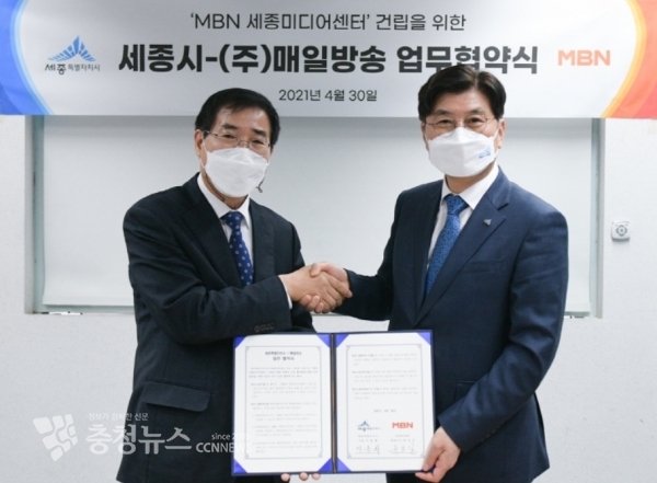 세종특별자치시(시장 이춘희)가 ㈜매일방송(MBN, 대표이사 류호길)과 ‘MBN 세종미디어센터(가칭)’ 건립을 위한 업무협약(MOU)을 30일 오후 5시 서울 충무로 MBN 사옥에서 체결했다.