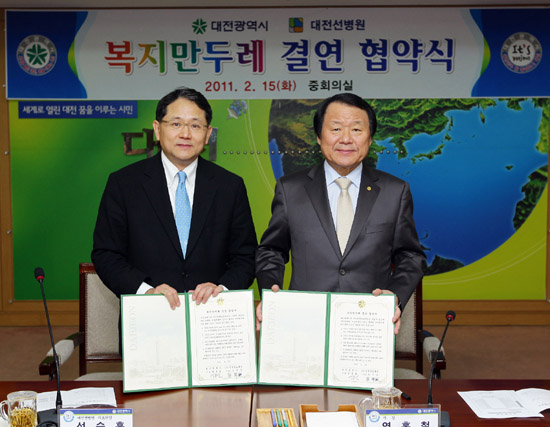 대전광역시(시장 염홍철)는 15일 오후 시청 중회의실에서 염홍철 대전시장과 선승훈 영훈의료재단 대전선병원 의료원장 등 관계자가 참석한 가운데 ‘복지만두레 결연사업 협약식’을 갖고 시민의 건강관리에 적극 동참하기로 했다.