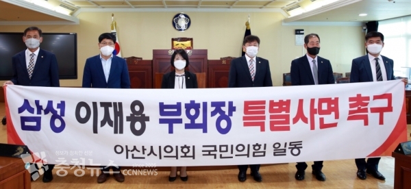 충남 아산시의회 국민의 힘 의원 일동은 11일 삼성 이재용 부회장의 특별사면을 대통령께 청원했다.
