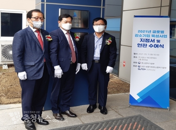 (재)세종테크노파크는 2021년 세종 글로벌 강소기업으로 선정된 주식회사 케이앤케이를 방문해글로벌 강소기업 지정서와 현판 수여식을 17일 개최하고 4년간 기업맞춤형 밀착지원을 약속하였다.