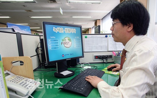 직원들이 사용하는 업무용 컴퓨터에 대기전력 차단장치도 설치, 일정 시간 컴퓨터를 사용하지 않으면 자동으로 대기전력을 차단하고 전원이 꺼져 ‘전원플러그 뺌’ 효과가 있는 에너지절약 자동관리시스템인 ‘체크탭’이다.