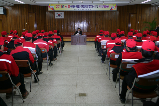 충청남도 논산시(시장 황명선)는 24일 오전 시청 회의실에서 산불전문예방 진화대와 산불감시기동대 발대식을 갖고 산불진화요령과 산불예방 활동 강화에 대한 산불방지 직무교육을 실시했다.