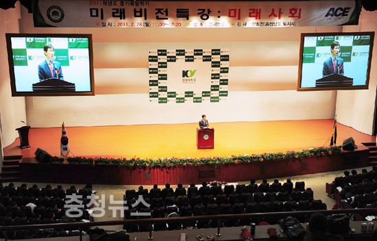 안희정 충남도지사는 28일 오전 건양대학교 콘서트홀에서 2011년 신입생․교직원 등 900여명을 대상으로 ‘미래는 변화를 대비하는 자의 몫’이란 주제로 특강을 실시했다.
