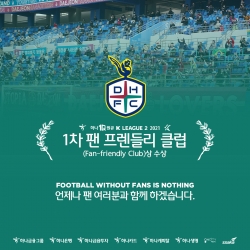 대전하나시티즌이 한국프로축구연맹에서 수여하는 2021 K리그2 1차‘팬 프랜들리 클럽상’수상의 영예를 안았다.