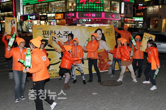 진로는 ‘편한소주 즐겨찾기‘의 홍보를 위해 ’오렌지 퍼포먼스팀‘의 길거리 퍼포먼스를 통해 상큼바랄함으로 시민들에게 눈과 귀가 즐겁도록 다가서고 있다. 또한 ’오렌지 홍보팀‘들은 직접소비자들과 접하면서 ’편한소주 즐겨찾기‘의 매력을 맛과 감성으로 편안함을 전하고 있다.