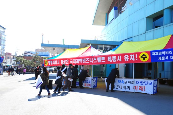 대책위 관계자는 “충청은 물론 대한민국의 발전을 위해 반드시 과학벨트가 세종시에 조성되어야 한다."며 서명운동에 적극적인 참여를 호소했다.