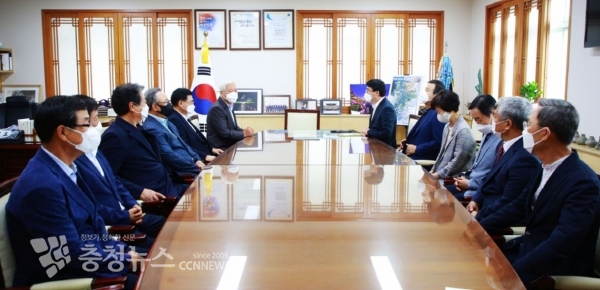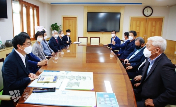 최길학 회장을 비롯해 부회장단, 사무국장 등 10여 명의 임원과 맹정호 시장과 자리를 함께하며 1시간 동안 다양한 의견을 나눴다.