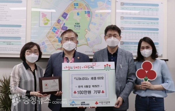 소담동 나눔리더 1호는 반곡동 수루배마을 주민인 박하진 반곡6통장으로, 최근 지역 내 어려운 이웃을 돕기 위해 100만 원을 기부하며 나눔리더에 가입했다. 세종시 전체로는 60호 나눔리더다.