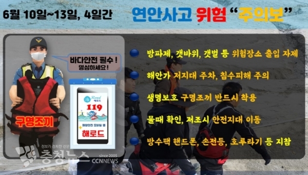 이 기간은 해안가 저지대 주차 침수사고나 갯바위, 갯벌 등 연안해역 위험장소에서의 고립, 표류, 익수 등 안전사고 위험성이 높아져 각별한 주의가 필요하다.