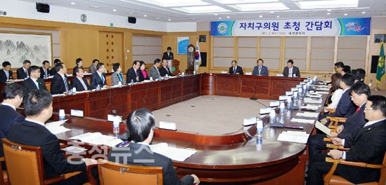 대전시는 9일 시청 대회의실에서 5개 자치구의회 의장 및 상임위원장을 초청 간담회를 갖고 자치구의 애로 및 건의사항을 청취하고 협력방안을 논의했다.
