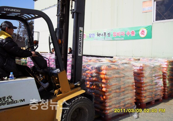 이날 수출 출고식엔 최형필 온동정미소 대표, 임헌필 충남도 농수산물수출팀장, 한기우 농산과장 등이 참석했으며 당진군은 재활용 컴퓨터 20대를 현지 교육용으로 보내줬다