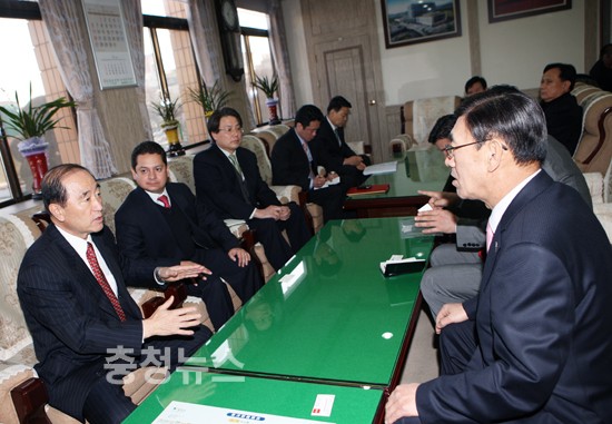 충남 당진군(군수 이철환)은 맥시코 산루이스市 카롤로스 페르난데즈(산루이스市 경제고문, 前 州의회의장)과 루벤루고(산루이스市 경제개발담당 자문), (주)멕시코르(MEXKOR) 박원익 사장외 4명이 9일 당진군을 방문했다고 밝혔다.
