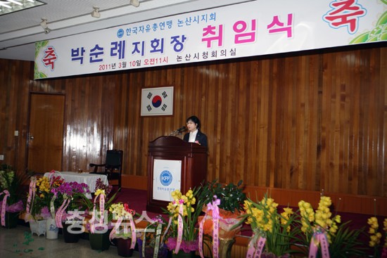 한국자유총연맹 논산시지회는 10일, 논산시청 제1회의실에서 황명선 시장 및 이혁규 시의회의장, 이인제 국회의원, 각급 기관단체장과 연맹회원 등 120여명이 참석한 가운데 제13대 한국자유총연맹 논산시지회장 취임식을 개최했다.